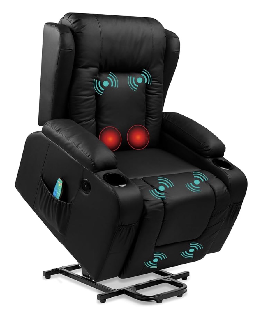- Recliner mechanisms have springs—keep fingers clear of pinch points.